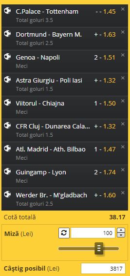 Bilet Pariuri 10 noiembrie 2018 – Cota 38.0!