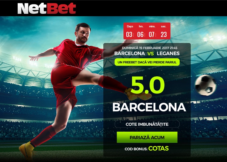 2. Pentru cota 5 la victorie Barcelona cu Leganes, Click pe acest Link sau pe imaginea de mai jos cu Barcelona si deschide un cont nou la Netbet!