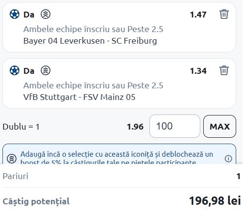 Biletul meu de azi are o cotă de aproximativ 2.0. Acesta este format cu sugestii de pariere din Bundesliga.