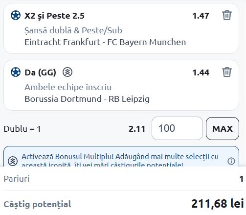 Biletul meu de azi vine din Bundesliga și are o cotă totală de 2.11.