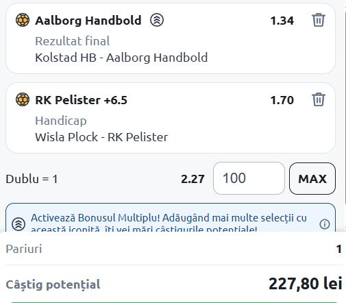 Pentru biletul meu de azi, am ales meciuri din Liga Campionilor de Handbal Masculin. Acesta are o cotă ce ne poate dubla miza.