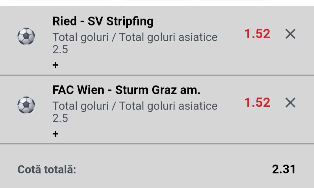 Și pariul lui Alin a fost unul câștigător ieri! Azi ne propune un bilet din Austria ce are o cotă totală de 2.31.