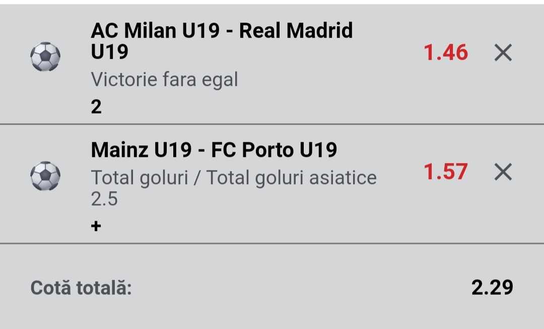 Biletul lui Alin din UEFA Youth League are o cotă totală de 2.29.