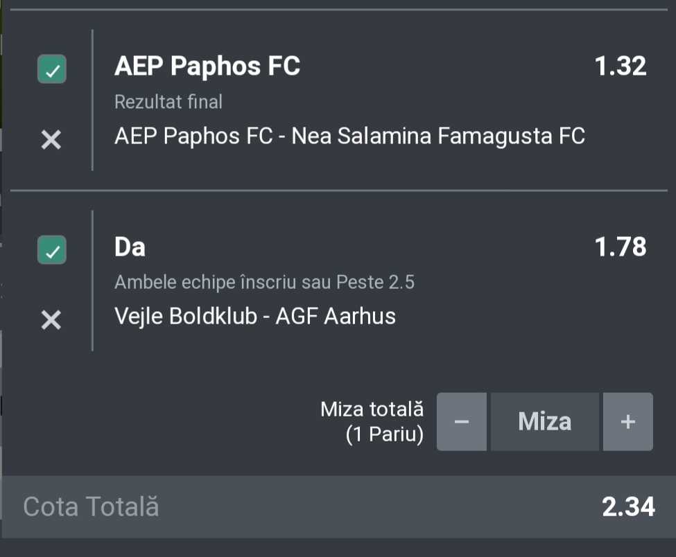 Alin are două pariuri câștigătoare la rând! Azi ne oferă un bilet în cota 2.34, compus cu pronosticuri din Cipru și din Danemarca.