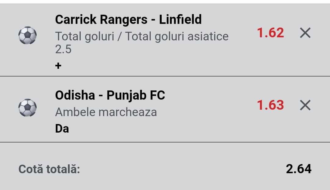 Alin ne recomandă un bilet într-o cotă totală de 2.64. Acesta conține ponturi din India și din Irlanda de Nord.