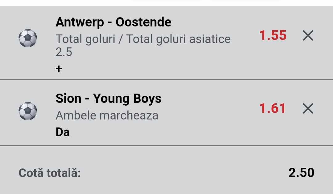 Alin ne oferă un bilet cu ponturi din Belgia și Elveția ce are o cotă totală de 2.50.
