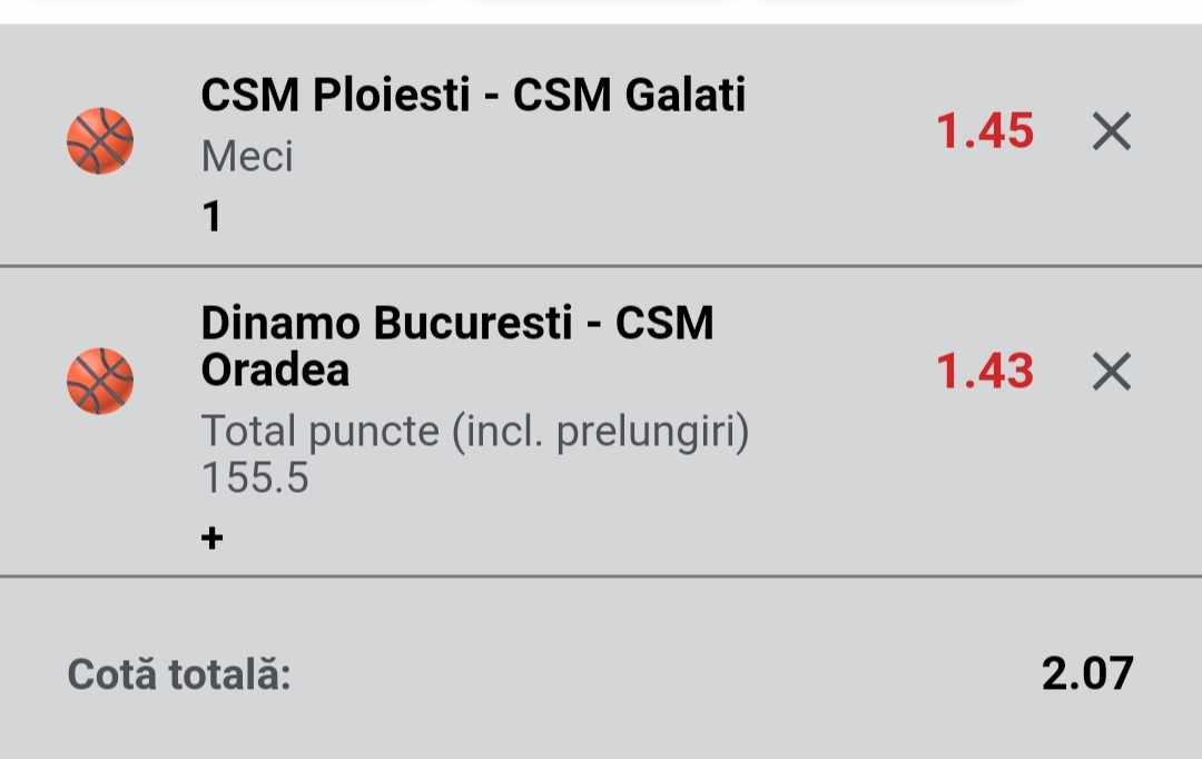 Alin ne oferă un bilet din baschetul românesc. Acesta are o cotă totală de 2.07.