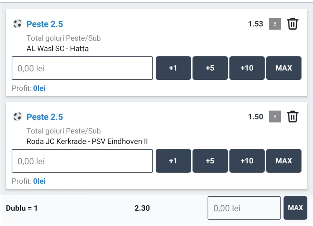 Pariul recomandat de Alin are o cotă de 2.30, compusă cu pronosticuri pentru meciuri din Olanda și Emiratele Arabe Unite.