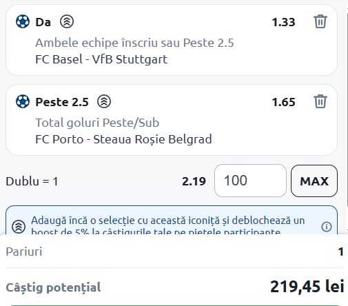Biletul lui ERC ne poate dubla azi miza jucată! Acesta a fost format cu pronosticuri pentru dueluri din Europa League.