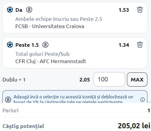 Dubla pregătită azi de ERC este jucată pe meciurile zilei din Superliga.