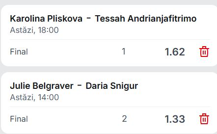 Pentru pariul zilei din tenis, am ales meciuri din cadrul turneului feminin de tip challenger Caldas da Rainha.