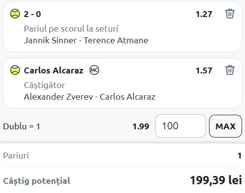 Biletul din tenis conține ponturi pentru semifinalele turneului ATP Cincinnati și ne poate dubla miza.