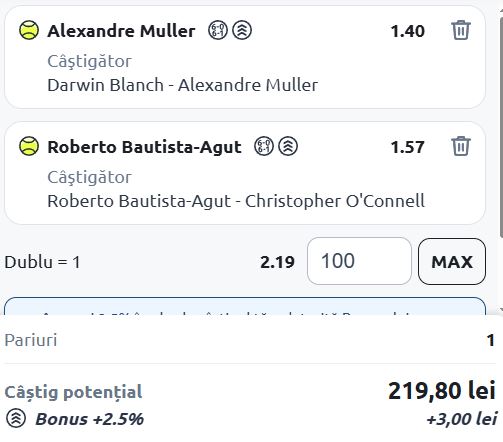 Pariul zilei din Tenis ne poate dubla miza. Acesta conține sugestii de pariere din cadrul turneului ATP Winston-Salem.