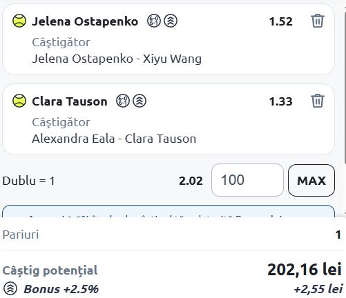 Pariul zilei din tenis este compus cu pronosticuri pentru dueluri din cadrul turneului WTA US Open.