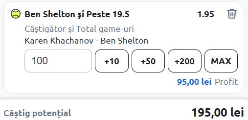 Pariul din tenis vine de la finala turneului ATP Toronto, acolo unde se vor duela Khachanov și Ben Shelton.