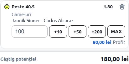 WIN pariul din tenis de ieri! Azi mizăm pe finala masculină de la US Open, adică pe duelul dintre Sinner și Alcaraz.